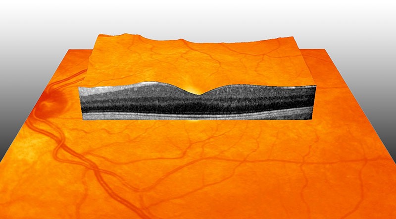 ► 01 Das von der Netzhaut reflektierte Licht wird zur Erzeugung hochauflösender 3D Bilder der zentralen Netzhaut verwendet.